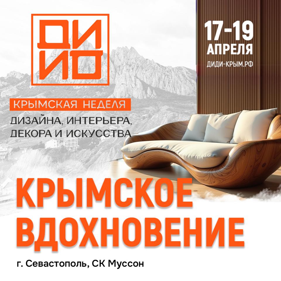 Крымская неделя дизайна, интерьера, декора и искусства – ДИДИ 2026 состоится с 17 по 19 апреля в спортивном комплексе «Муссон» г. Севастополь. Это масштабная выставка, посвященная всему, что делает наше жилое пространство уютным, функциональным и по-настоящему эстетичным.