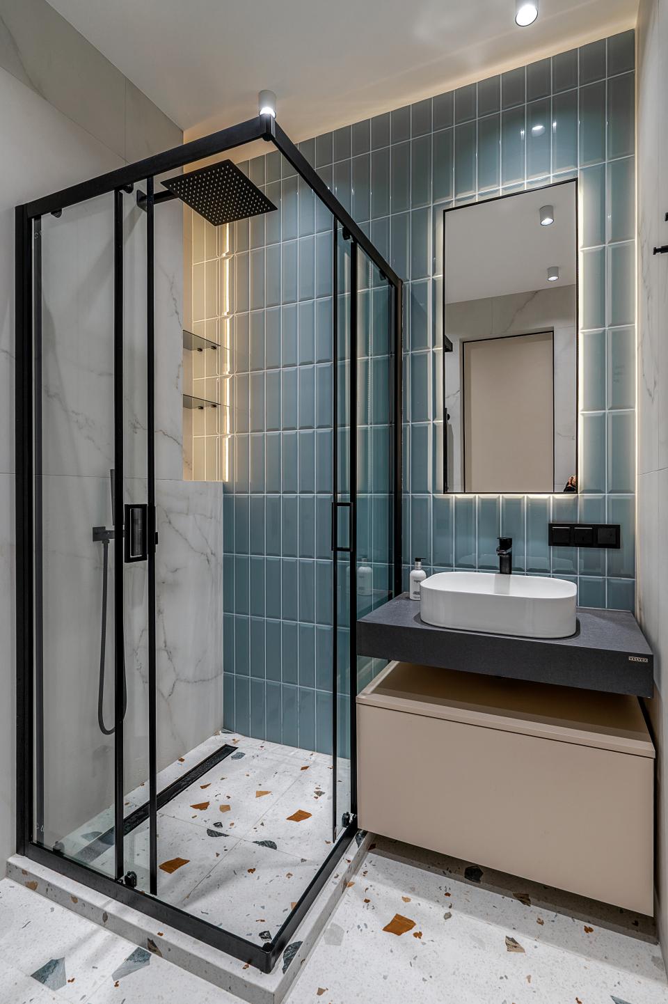 Особое внимание автор проекта уделила световым решениям, создав разные сценарии с основным заполняющим светом и уютной вечерней подсветкой. Поскольку спальни выходят на солнечную сторону, то она предусмотрела шторы black out, а в санузлах установила качественную европейскую сантехнику, включая встроенный душевой смеситель с кнопочным управлением, что делает рутинные водные процедуры более комфортными.