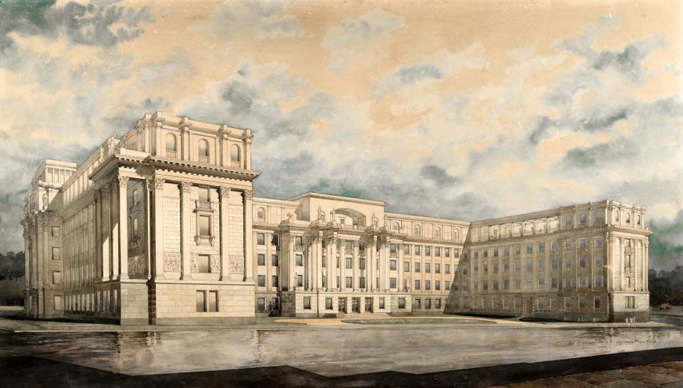 Поликлиника № 2 Лечсанупра Кремля в переулке Сивцев-Вражек. Неосуществленный вариант. 1935 г. Из собрания Музея архитектуры им. А.В. Щусева