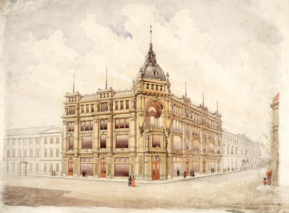 Торговый дом А.С. Хомякова на углу улиц Петровки и Кузнецкого моста. 1898-1900 гг. Из собрания Музея архитектуры им. А.В. Щусева
