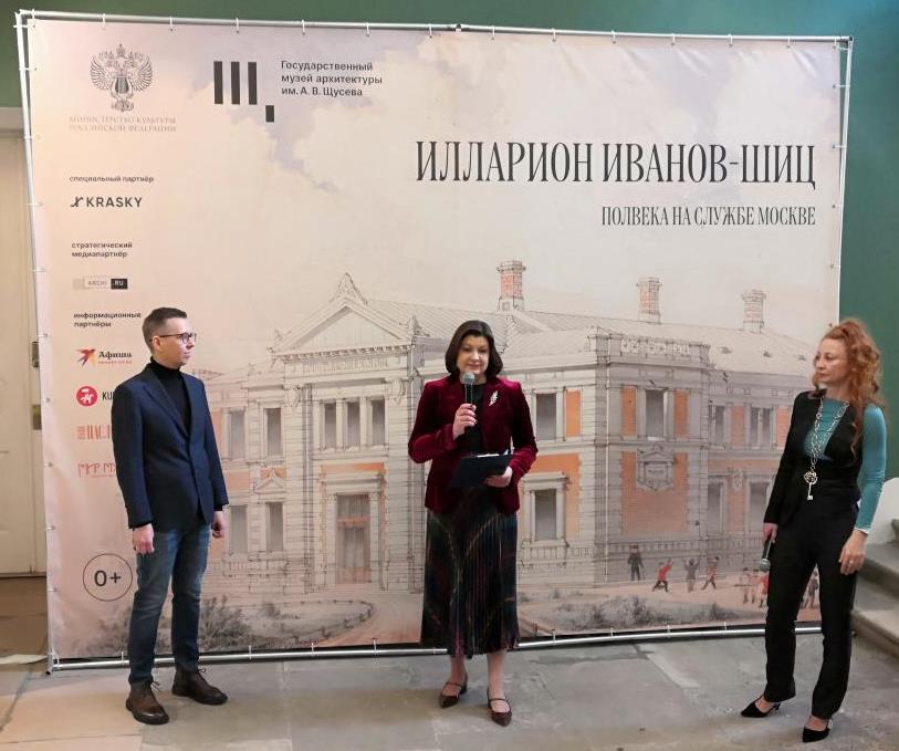 Сегодня состоялось пресс-открытие, на котором выступили Наталья Шашкова, директор Музея архитектуры им. А.В. Щусева и кураторы проекта: Татьяна Иванова, главный научный сотрудник Отдела хранения архитектурно-графических фондов XVIII-XIX веков Музея архитектуры и Александр Сухачёв, искусствовед, независимый исследователь.