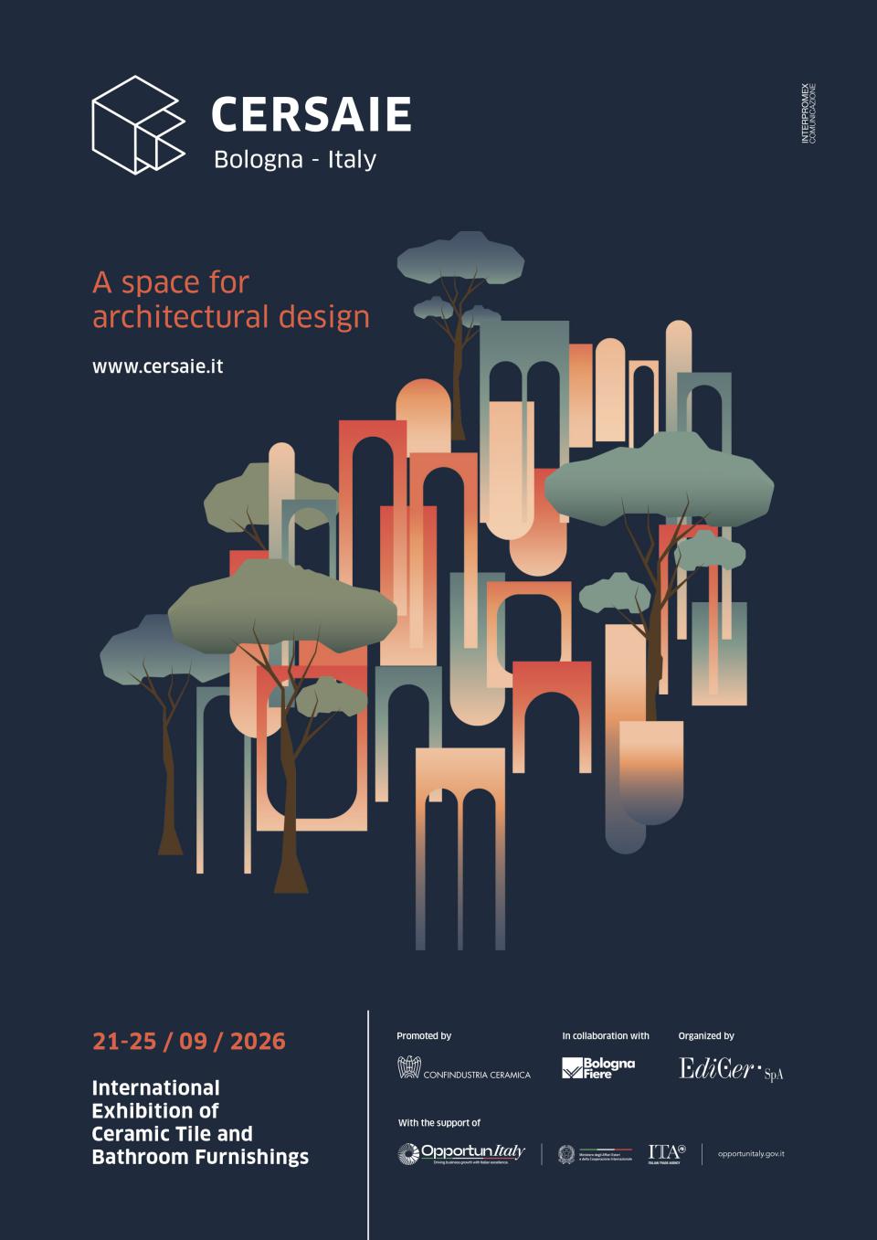 Cersaie представила ключевой визуальный образ 43-й Международной выставки керамической плитки и сантехники, которая пройдет в Болонье с 21 по 25 сентября 2026 года. Изображение, созданное для продвижения выставки 2026 года, расширяет концепцию архитектурного пространства, ставя в ее основу открытое, инклюзивное и постоянно развивающееся видение дизайна.