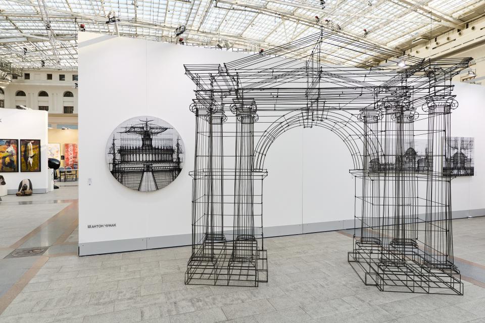 Современное искусство на АРТ МОСКВЕ показывают в том числе и галеристы, участвовавшие 30 лет назад в первой ярмарке в ЦДХ. Так, Владимир Овчаренко и его галерея Ovcharenko представляет произведения Леонида Цхэ, Павла Пепперштейна, Валерия Кошлякова, Егора Кошелева, Влада Кулькова, Алексея Каллимы и Владимира Логутова. Крокин галерея презентует инсталляцию «Портал» из проекта