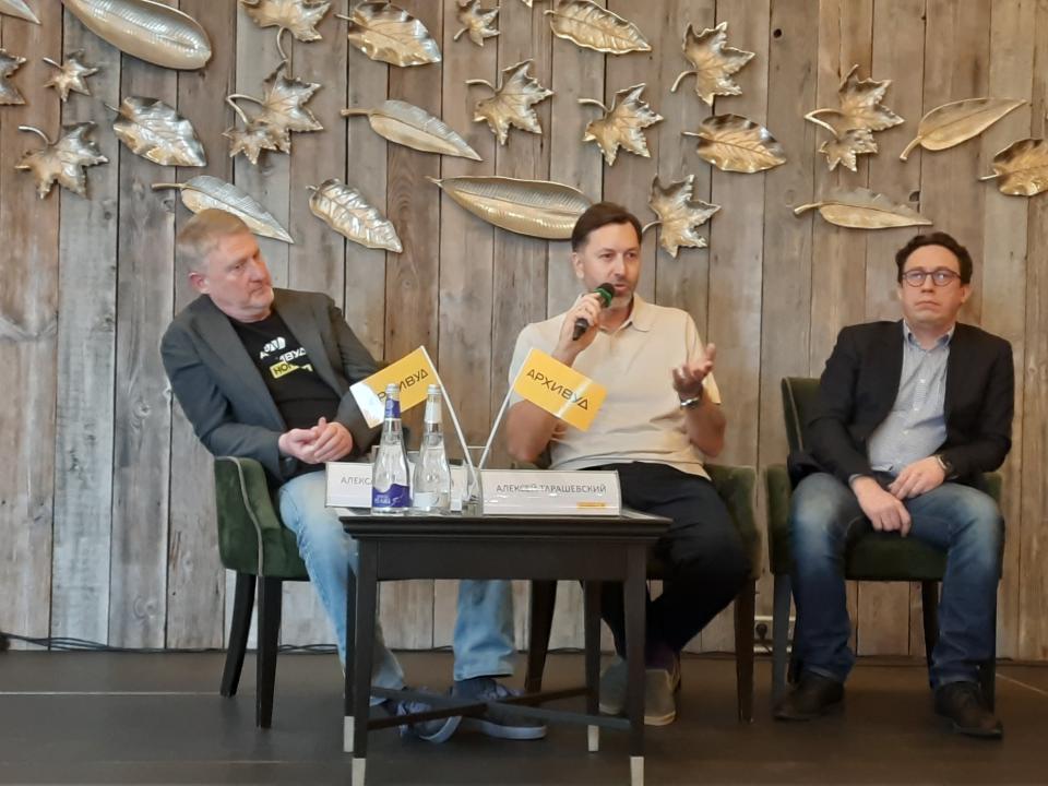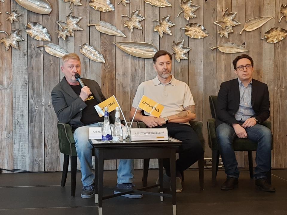 Александр Львовский, Алексей Тарашевский, Виталий Горелов на пресс-конференции
