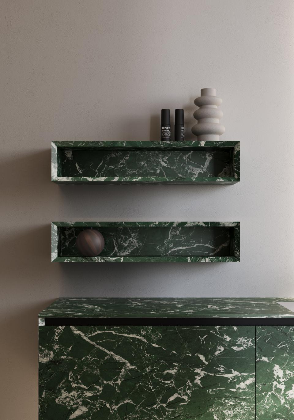 Добавлены новые открытые базовые и настенные модули, обеспечивающие увеличенную вместимость и позволяющие создавать более универсальные конфигурации. Благодаря фирменному 45-градусному скошенному краю, эти новые элементы поддерживают визуальную целостность всей коллекции.