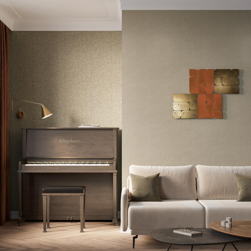 Светлые матовые варианты дополнены более насыщенными, в том числе сделанными с деликатным нанесением золота. В качестве компаньона для обоев с цветочным рисунком можно использовать ещё одну новинку: обои с мелкой текстурой благородного твида. Артикулы выполнены с матовой поверхностью.