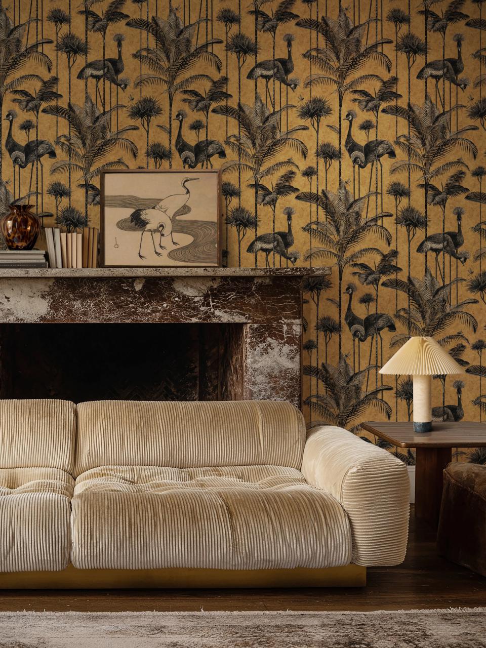 Обои Crane Fonda представляют собой невероятно эффектного серого венценосного журавля среди пышных пальмовых листьев, а Safari Soiree вдохновлена классическим орнаментом Туаль де Жуи, переосмысленным с помощью озорных животных, которые гарантированно добавят игривости любой комнате.