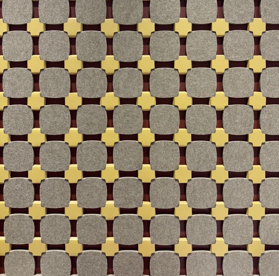 Панели выполнены из фоноакустического и термостабильного фетра с декоративным покрытием из переработанной кожи с олеофобными, антибактериальными и противопожарными свойствами. MODUL — редкий пример решения, в котором выразительный визуальный эффект сочетается с высокими эксплуатационными характеристиками.