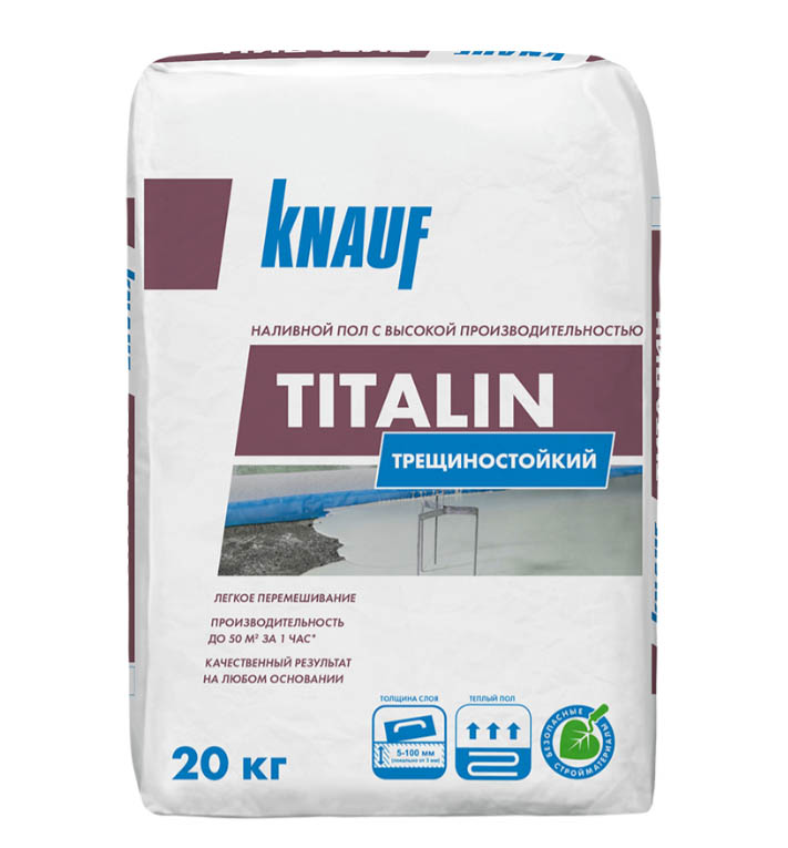Компания КНАУФ представила обновленный самонивелирующийся наливной пол КНАУФ-Титалин. Применяется для базового толстослойного и финишного тонкослойного выравнивания основания толщиной от 5 мм (локально от 3 мм) до 100 мм. Без дополнительной обработки (шлифования) подходит под укладку декоративных эксплуатируемых покрытий, таких как керамическая плитка, ламинат, паркетная доска, линолеум на подложке.