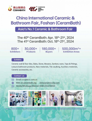 Cerambath, китайская международная выставка керамической плитки, керамогранита и оборудования для ванных комнат, проводится два раза в год. Даты традиционны - с 18 по 21 октября и апреля..