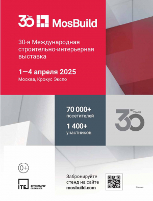 MOSBUILD, юбилейная 30-я Международная выставка строительных и отделочных материалов состоится с 1 по 4 апреля в МВЦ «Крокус Экспо».